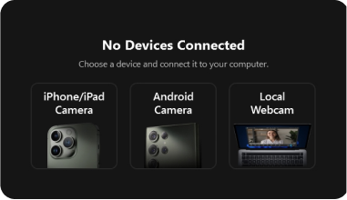 Easily connect your phone's camera, digital camera, DLSR camera, action camera, external webcam, or integrated webcam, or all of them to FineCam. There is no limit to the number of connected cameras.